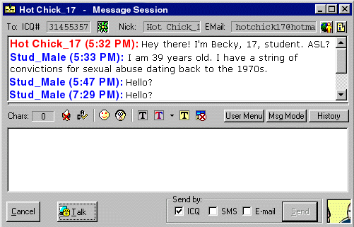 the internet. #4: Instant Messaging Mobiles, email, instant messaging -- being constantly contactable makes it all the more depressing when no one bothers and you're left there alone staring at a small icon that never flashes. Still, it passes the time. |