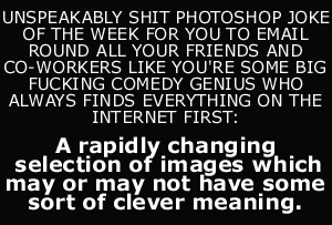 UNSPEAKABLY SHIT PHOTOSHOP JOKE OF THE WEEK FOR YOU TO EMAIL ROUND ALL YOUR FRIENDS AND CO-WORKERS LIKE YOU'RE SOME BIG FUCKING COMEDY GENIUS WHO ALWAYS FINDS EVERYTHING ON THE INTERNET FIRST: