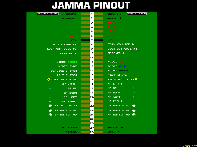 Secondly, JAMMA does not define the 'orientation' of the monitor. The monitor could be vertical (i.e. turned on it's side, as in 1943, Tetris etc.) or horizontal (like a normal TV, as in just about all games these days)