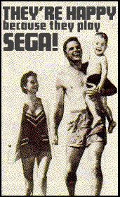 The key moment in Sega's early history came in 1952 with the advert pictured to the left. The world was just getting to grips with the new idea of advertising slogans and clever marketing, and when Sega's design team came up with the classic "They're happy because they play Sega" campaign, the advertising world was rocked to it's very foundations, and it took the company to a whole new level of public awareness.