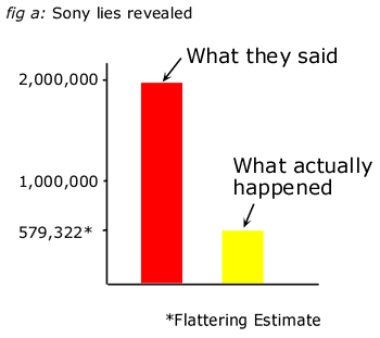 Shocking (and correct) sales figures have shown that the TOTAL software sales figures for the PS2 launch weekend were as low as 579,322. Which shows that Japanese punters were buying PS2 to primarily use it as a DVD player. Either that or Sony are drastically lying about their day one sales figures. Either way it's nothing like the phenomenon they predicted. Ha ha, you wankers. You WANKERS. Granted, all corporate PR people are complete lying scum by job description, but that's still going a bit too far even for them.Game shortage crisis.