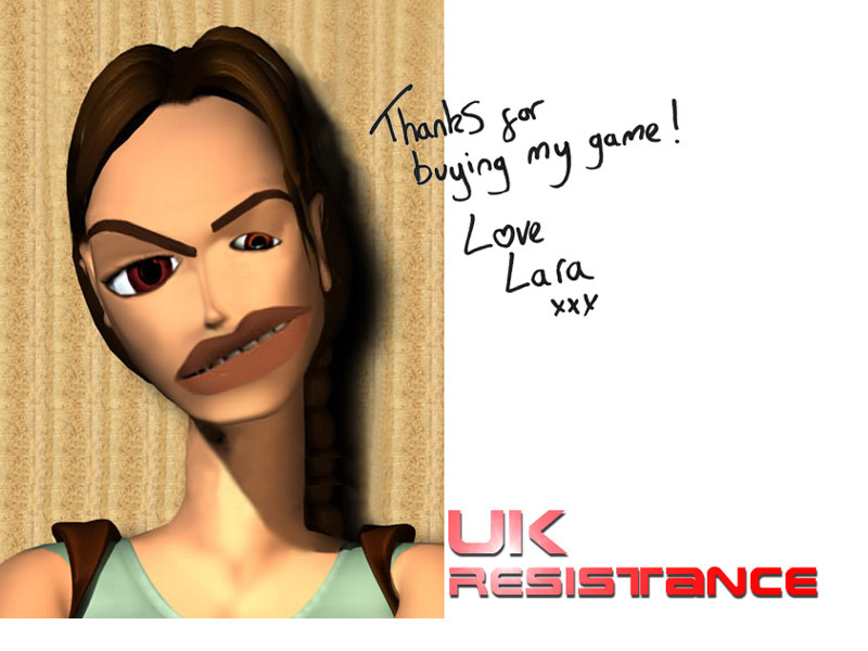 Continuing our pointless vendetta against Lara/Core/Eidos, we proudly present some nice Lara Porn which was sent in by a like-minded reader. He promises us he also has some pics that "show more" - stay tuned!
