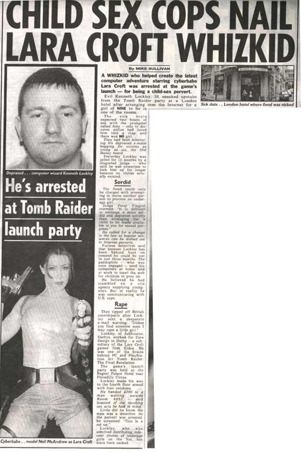 Not only morally bankrupt, but now also officially illegal and classified as paedophile material - it's Tomb Raider! Along with nine-year-old girl fan "evil" Ken Lockley. According to the report he "Used computers at home and work" - a cry for help that we can all relate to.