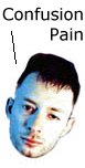 Thom sings:Confusion static from your mouth Don't understand American Or possibly Australian |