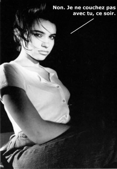Er, mademoiselle Dalle... voulez vous, er, cush... couchez, er would you... um, avec me, er, this eveni... no, ce soir... would you, er... Merde. (Click on Betty for a nice surprise...) Last week's star HOME!